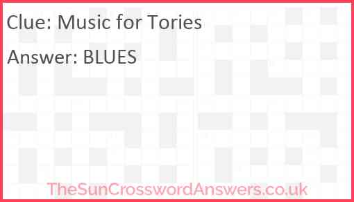 Music for Tories is a crossword clue for which we have 1 possible answer and we have spotted 1 times in our database. This crossword clue was last seen on 15 August 2020 in The Sun Cryptic Crossword puzzle!