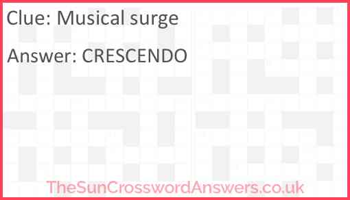Musical surge is a crossword clue for which we have 1 possible answer and we have spotted 9 times in our database. This crossword clue was last seen on 03 March 2024 in The Sun Coffee Time Crossword puzzle!