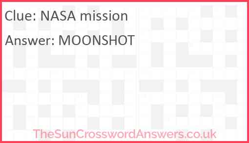 NASA mission is a crossword clue for which we have 1 possible answer and we have spotted 2 times in our database. This crossword clue was last seen on 14 March 2025 in The Sun Coffee Time Crossword puzzle!