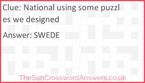 National using some puzzles we designed is a crossword clue for which we have 1 possible answer and we have spotted 2 times in our database. This crossword clue was last seen on 21 June 2025 in The Sun Cryptic Crossword puzzle!