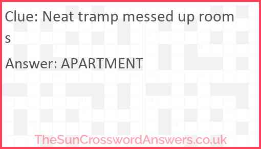Neat tramp messed up rooms is a crossword clue for which we have 1 possible answer and we have spotted 3 times in our database. This crossword clue was last seen on 18 July 2025 in The Sun Cryptic Crossword puzzle!