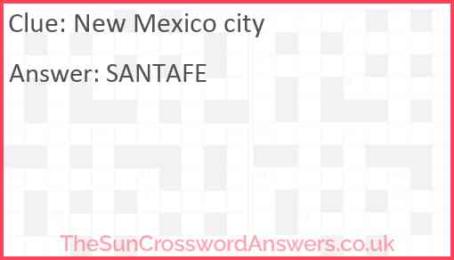 New Mexico city is a crossword clue for which we have 1 possible answer and we have spotted 2 times in our database. This crossword clue was last seen on 30 July 2025 in The Sun Coffee Time Crossword puzzle!