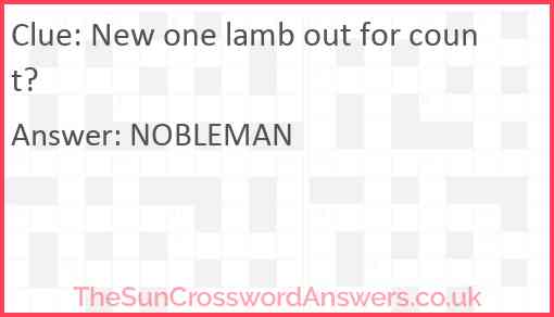 New one lamb out for count? is a crossword clue for which we have 1 possible answer and we have spotted 1 times in our database. This crossword clue was last seen on 05 September 2021 in The Sun Cryptic Crossword puzzle!
