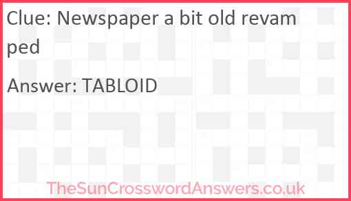 Newspaper a bit old revamped is a crossword clue for which we have 1 possible answer and we have spotted 1 times in our database. This crossword clue was last seen on 14 August 2023 in The Sun Cryptic Crossword puzzle!