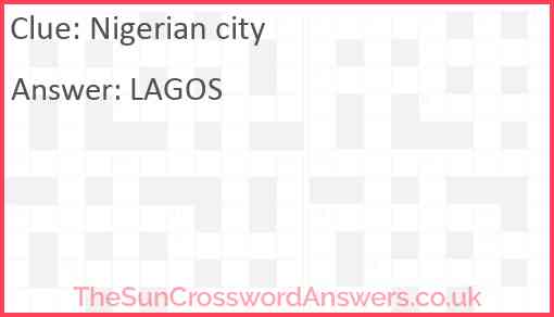Nigerian city is a crossword clue for which we have 1 possible answer and we have spotted 1 times in our database. This crossword clue was last seen on 16 December 2024 in The Sun Coffee Time Crossword puzzle!