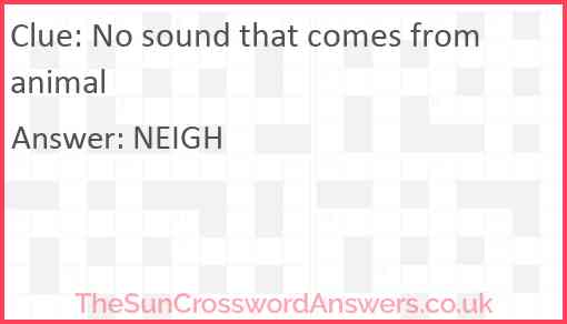 No sound that comes from animal is a crossword clue for which we have 1 possible answer and we have spotted 3 times in our database. This crossword clue was last seen on 07 June 2025 in The Sun Cryptic Crossword puzzle!