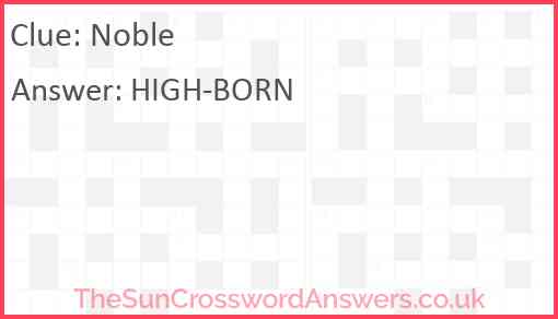Noble is a crossword clue for which we have 2 possible answer and we have spotted 4 times in our database. This crossword clue was last seen on 14 November 2022 in The Sun Coffee Time Crossword puzzle!