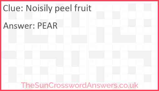 Noisily peel fruit is a crossword clue for which we have 1 possible answer and we have spotted 1 times in our database. This crossword clue was last seen on 01 November 2024 in The Sun Cryptic Crossword puzzle!