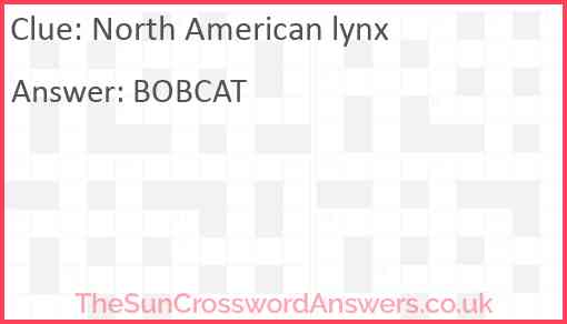 North American lynx is a crossword clue for which we have 1 possible answer and we have spotted 4 times in our database. This crossword clue was last seen on 26 April 2025 in The Sun Coffee Time Crossword puzzle!