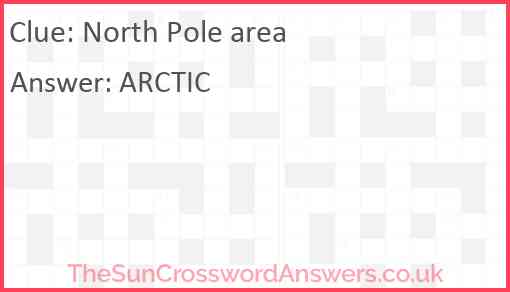 North Pole area is a crossword clue for which we have 1 possible answer and we have spotted 1 times in our database. This crossword clue was last seen on 23 March 2021 in The Sun Coffee Time Crossword puzzle!