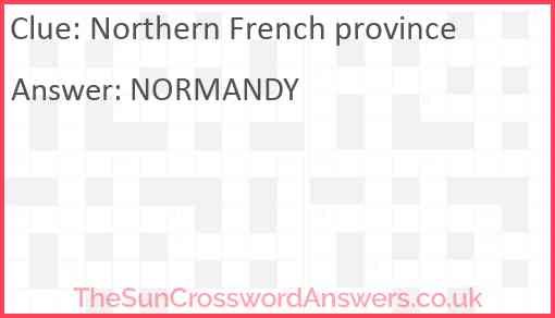 Northern French province is a crossword clue for which we have 1 possible answer and we have spotted 4 times in our database. This crossword clue was last seen on 09 January 2023 in The Sun Coffee Time Crossword puzzle!