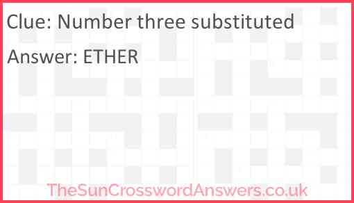 Number three substituted is a crossword clue for which we have 1 possible answer and we have spotted 2 times in our database. This crossword clue was last seen on 02 June 2022 in The Sun Cryptic Crossword puzzle!