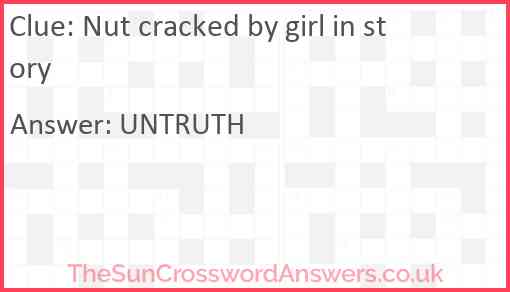 Nut cracked by girl in story is a crossword clue for which we have 1 possible answer and we have spotted 3 times in our database. This crossword clue was last seen on 14 November 2023 in The Sun Cryptic Crossword puzzle!