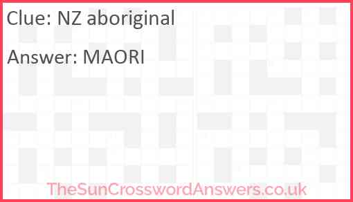 NZ aboriginal is a crossword clue for which we have 1 possible answer and we have spotted 10 times in our database. This crossword clue was last seen on 04 June 2024 in The Sun Coffee Time Crossword puzzle!