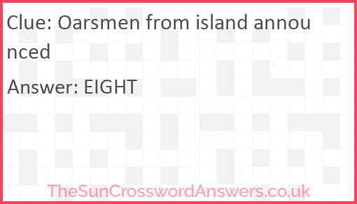 Oarsmen from island announced is a crossword clue for which we have 1 possible answer and we have spotted 2 times in our database. This crossword clue was last seen on 21 October 2021 in The Sun Cryptic Crossword puzzle!