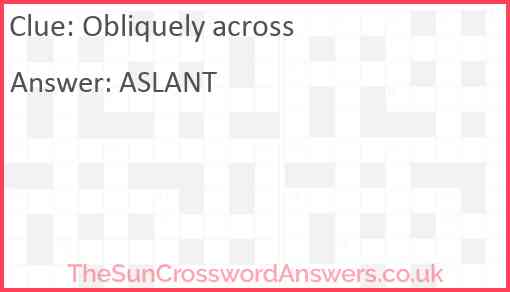 Obliquely across is a crossword clue for which we have 1 possible answer and we have spotted 3 times in our database. This crossword clue was last seen on 28 June 2022 in The Sun Coffee Time Crossword puzzle!