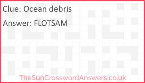 Ocean debris is a crossword clue for which we have 1 possible answer and we have spotted 7 times in our database. This crossword clue was last seen on 02 May 2025 in The Sun Coffee Time Crossword puzzle!