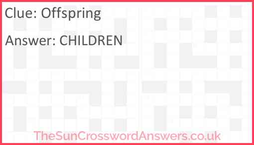 Offspring is a crossword clue for which we have 3 possible answer and we have spotted 12 times in our database. This crossword clue was last seen on 12 April 2024 in The Sun Coffee Time Crossword puzzle!