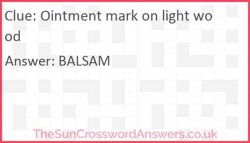 Ointment mark on light wood is a crossword clue for which we have 1 possible answer and we have spotted 1 times in our database. This crossword clue was last seen on 25 August 2022 in The Sun Cryptic Crossword puzzle!