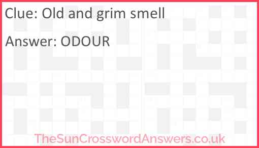 Old and grim smell is a crossword clue for which we have 1 possible answer and we have spotted 4 times in our database. This crossword clue was last seen on 03 April 2024 in The Sun Cryptic Crossword puzzle!