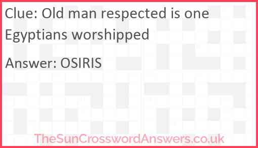 Old man respected is one Egyptians worshipped is a crossword clue for which we have 1 possible answer and we have spotted 1 times in our database. This crossword clue was last seen on 08 December 2024 in The Sun Cryptic Crossword puzzle!