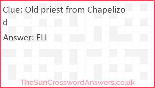 Old priest from Chapelizod is a crossword clue for which we have 1 possible answer and we have spotted 3 times in our database. This crossword clue was last seen on 20 April 2023 in The Sun Cryptic Crossword puzzle!