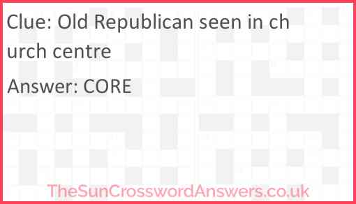 Old Republican seen in church centre is a crossword clue for which we have 1 possible answer and we have spotted 2 times in our database. This crossword clue was last seen on 28 June 2020 in The Sun Cryptic Crossword puzzle!