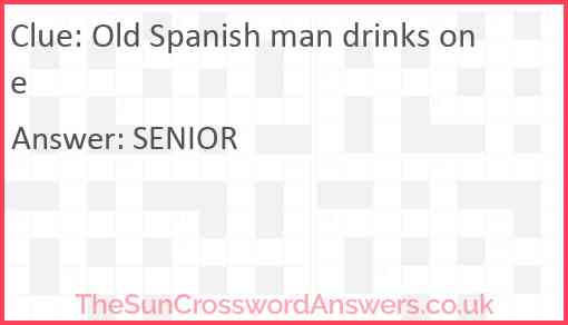 Old Spanish man drinks one is a crossword clue for which we have 1 possible answer and we have spotted 2 times in our database. This crossword clue was last seen on 11 May 2023 in The Sun Cryptic Crossword puzzle!