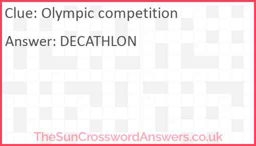 Olympic competition is a crossword clue for which we have 1 possible answer and we have spotted 2 times in our database. This crossword clue was last seen on 09 August 2024 in The Sun Coffee Time Crossword puzzle!