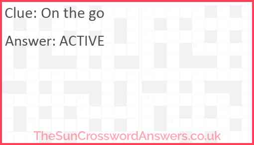 On the go is a crossword clue for which we have 1 possible answer and we have spotted 6 times in our database. This crossword clue was last seen on 26 December 2023 in The Sun Coffee Time Crossword puzzle!
