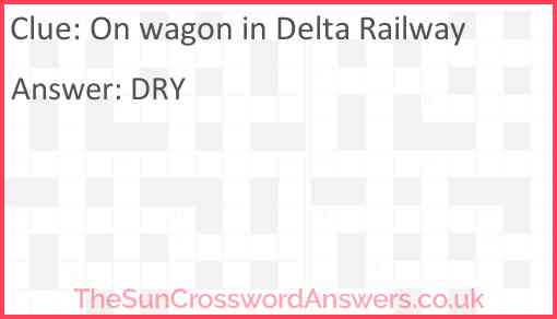On wagon in Delta Railway is a crossword clue for which we have 1 possible answer and we have spotted 2 times in our database. This crossword clue was last seen on 24 October 2020 in The Sun Cryptic Crossword puzzle!