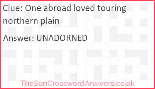 One abroad loved touring northern plain is a crossword clue for which we have 1 possible answer and we have spotted 2 times in our database. This crossword clue was last seen on 16 June 2024 in The Sun Cryptic Crossword puzzle!
