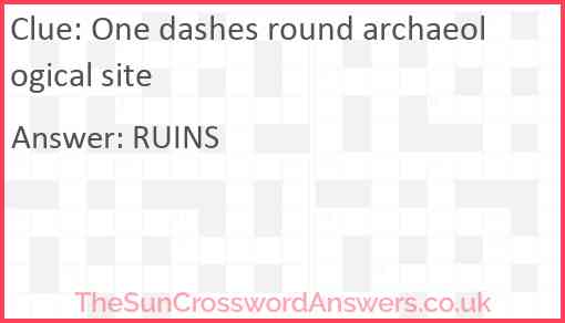 One dashes round archaeological site is a crossword clue for which we have 1 possible answer and we have spotted 1 times in our database. This crossword clue was last seen on 09 March 2020 in The Sun Cryptic Crossword puzzle!