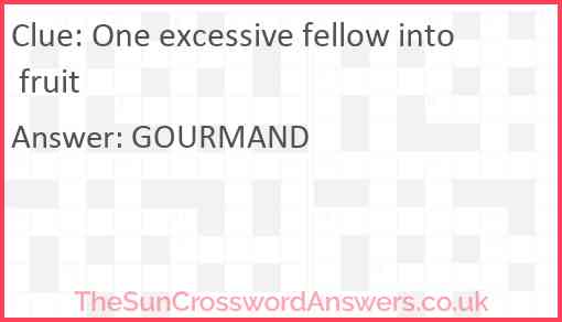One excessive fellow into fruit is a crossword clue for which we have 1 possible answer and we have spotted 1 times in our database. This crossword clue was last seen on 10 February 2021 in The Sun Cryptic Crossword puzzle!
