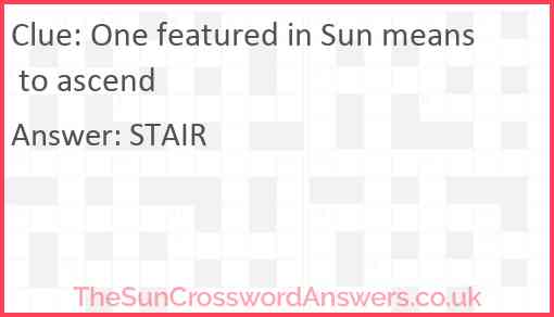 One featured in Sun means to ascend is a crossword clue for which we have 1 possible answer and we have spotted 1 times in our database. This crossword clue was last seen on 10 September 2020 in The Sun Cryptic Crossword puzzle!