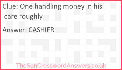 One handling money in his care roughly is a crossword clue for which we have 1 possible answer and we have spotted 1 times in our database. This crossword clue was last seen on 25 March 2024 in The Sun Cryptic Crossword puzzle!
