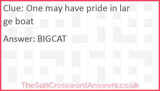 One may have pride in large boat is a crossword clue for which we have 1 possible answer and we have spotted 4 times in our database. This crossword clue was last seen on 27 April 2025 in The Sun Cryptic Crossword puzzle!
