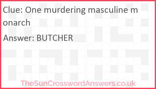 One murdering masculine monarch is a crossword clue for which we have 1 possible answer and we have spotted 2 times in our database. This crossword clue was last seen on 26 September 2022 in The Sun Cryptic Crossword puzzle!