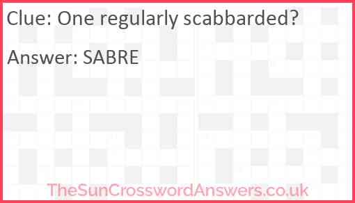 One regularly scabbarded? is a crossword clue for which we have 1 possible answer and we have spotted 1 times in our database. This crossword clue was last seen on 22 August 2024 in The Sun Cryptic Crossword puzzle!