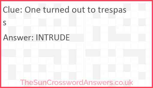 One turned out to trespass is a crossword clue for which we have 1 possible answer and we have spotted 2 times in our database. This crossword clue was last seen on 18 April 2023 in The Sun Cryptic Crossword puzzle!