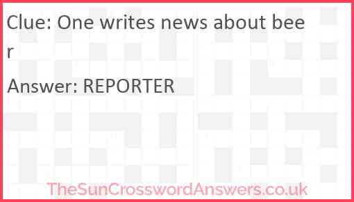 One writes news about beer is a crossword clue for which we have 1 possible answer and we have spotted 4 times in our database. This crossword clue was last seen on 30 April 2025 in The Sun Cryptic Crossword puzzle!
