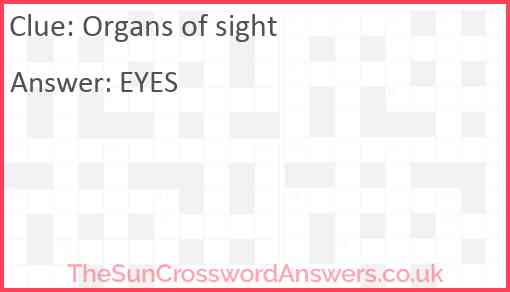 Organs of sight is a crossword clue for which we have 1 possible answer and we have spotted 2 times in our database. This crossword clue was last seen on 04 November 2023 in The Sun Coffee Time Crossword puzzle!