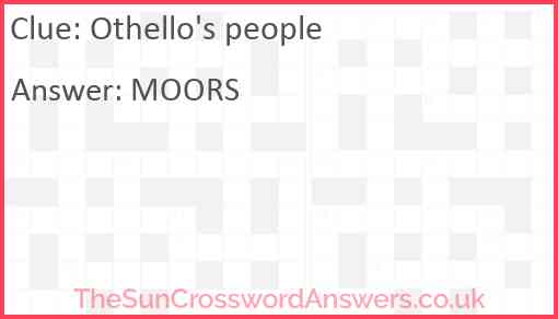 Othello's people is a crossword clue for which we have 1 possible answer and we have spotted 1 times in our database. This crossword clue was last seen on 16 January 2025 in The Sun Coffee Time Crossword puzzle!