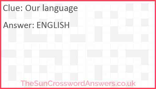Our language is a crossword clue for which we have 1 possible answer and we have spotted 1 times in our database. This crossword clue was last seen on 07 May 2020 in The Sun Coffee Time Crossword puzzle!