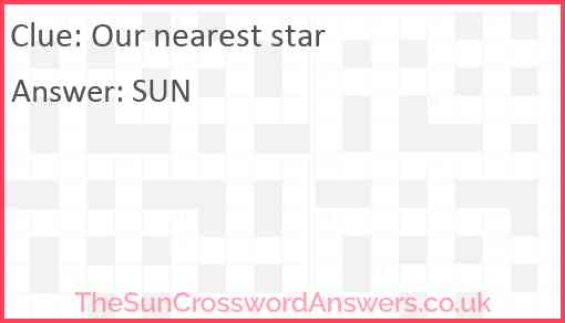 Our nearest star is a crossword clue for which we have 1 possible answer and we have spotted 1 times in our database. This crossword clue was last seen on 14 August 2021 in The Sun Coffee Time Crossword puzzle!
