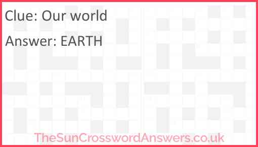 Our world is a crossword clue for which we have 1 possible answer and we have spotted 10 times in our database. This crossword clue was last seen on 22 July 2024 in The Sun Coffee Time Crossword puzzle!