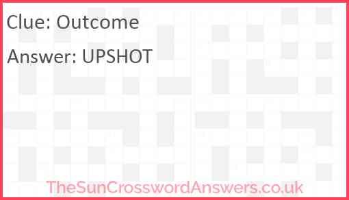 Outcome is a crossword clue for which we have 1 possible answer and we have spotted 2 times in our database. This crossword clue was last seen on 04 April 2023 in The Sun Coffee Time Crossword puzzle!