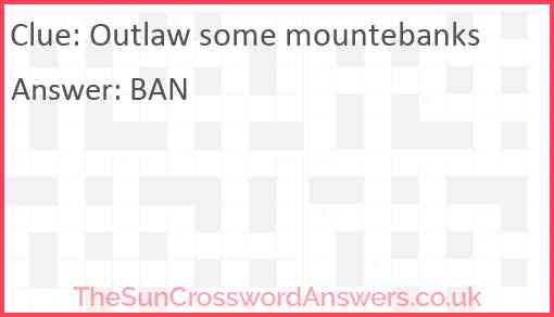 Outlaw some mountebanks is a crossword clue for which we have 1 possible answer and we have spotted 2 times in our database. This crossword clue was last seen on 04 May 2025 in The Sun Cryptic Crossword puzzle!