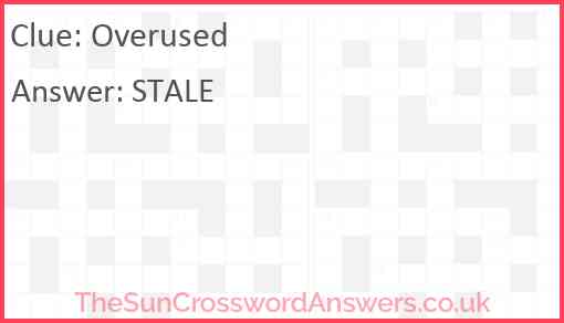 Overused is a crossword clue for which we have 1 possible answer and we have spotted 8 times in our database. This crossword clue was last seen on 25 July 2025 in The Sun Coffee Time Crossword puzzle!