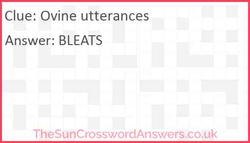 Ovine utterances is a crossword clue for which we have 1 possible answer and we have spotted 1 times in our database. This crossword clue was last seen on 07 August 2022 in The Sun Coffee Time Crossword puzzle!